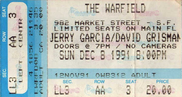 JERRY GARCIA AND DAVID GRISMAN 12-8-1991 WARFIELD THEATER SAN FRANCISCO CA