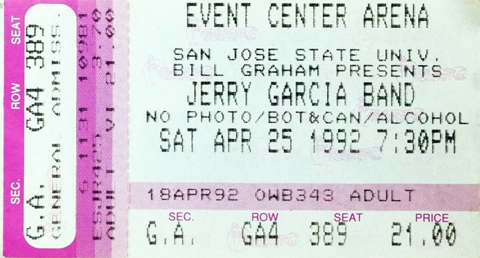 Jerry Garcia Band Event Center Arena, San Jose, CA on 04/25/92 Complete Show