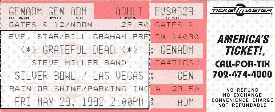 Grateful Dead 5-29-92 Sam Boyd Silver Bowl Las Vegas NV