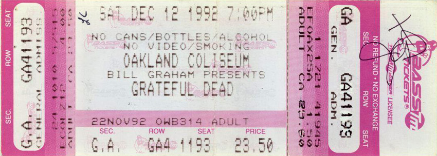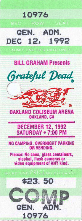 Grateful Dead Oakland Alameda County Coliseum, Oakland, CA on 12/12/92 Complete Show
