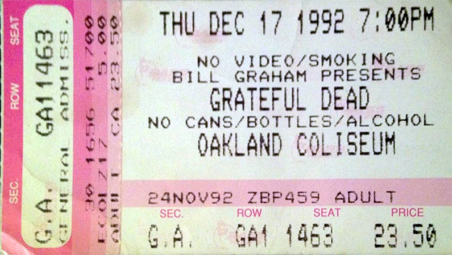 Grateful Dead Oakland Alameda County Coliseum, Oakland, CA on 12/17/92 2nd Set Only