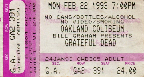 Grateful Dead Oakland Alameda Coliseum, Oakland, CA on 02/22/93 2nd Set Only
