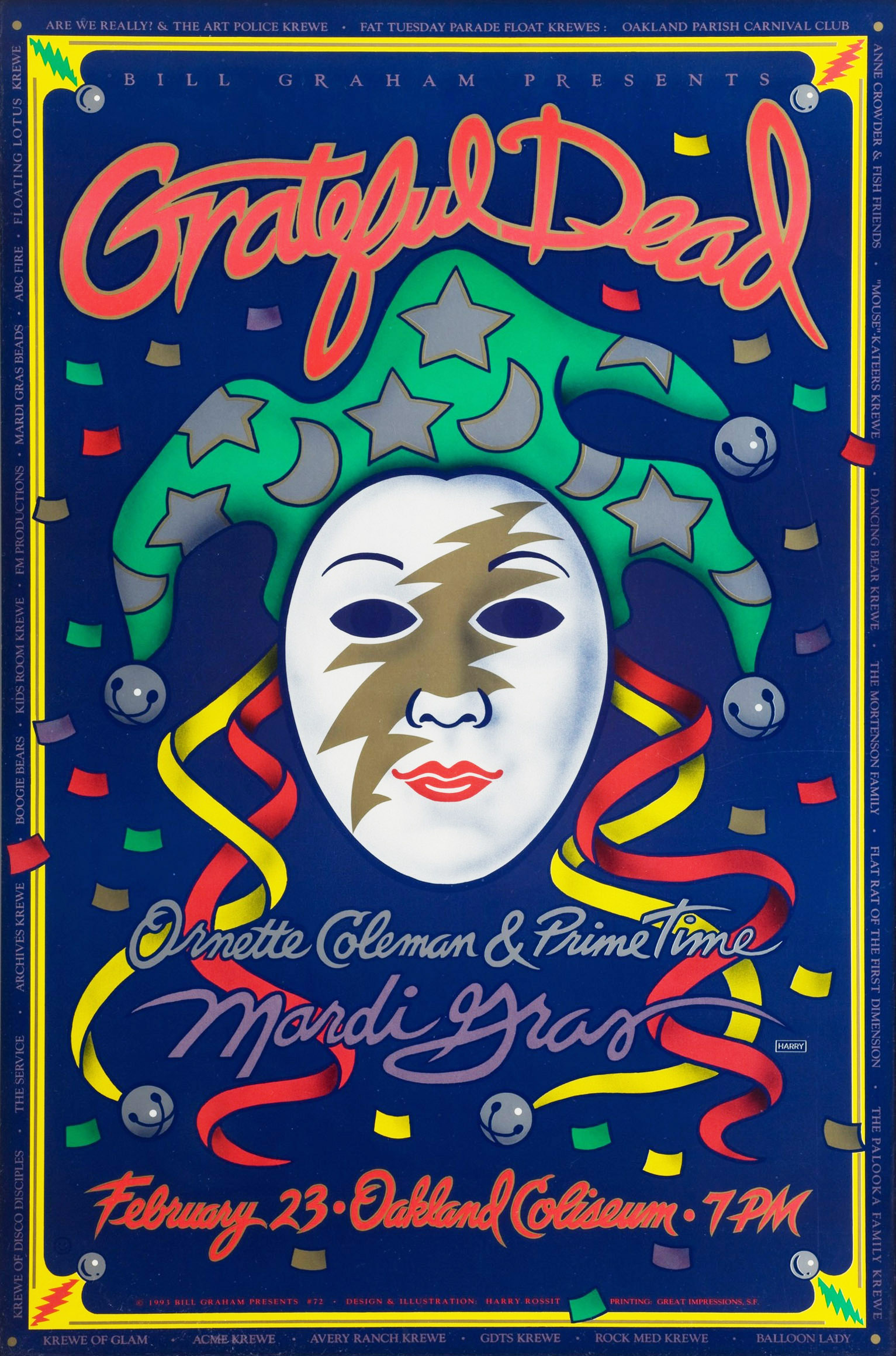 [1] First performance [2] with Mardi Gras parade through crowd then onstage [3] First performance in Set 2 [4] With Sikiru Adepoju on percussion and Graham Wiggins on didgeridoo [5] With Ornette Coleman on saxophone [6] With Denardo Coleman on drums