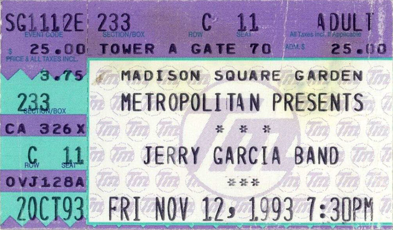 JGMF: The Reedman vs. The Gunslinger: JGB with David Murray, Madison Square Garden, November 12, 1993: Murray plays the whole show except "The Maker". Garcia starts playing "Everybody Needs Somebody To Love" for the last tune of set I, but switches to "Lay Down Sally", and then proceeds to lay down a version for the ages. In sum: "the 'Lay Down Sally' from November 12, 1993 provides one of the finest musical displays of Garcia's late solo career."