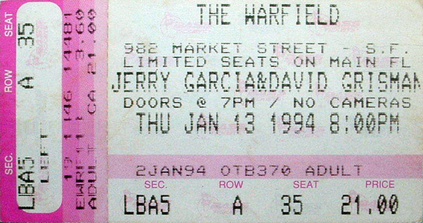 Sue: the two-night guarantee was $47,000, so $1,500 less per night than when JGB played the Warfield in October '93.