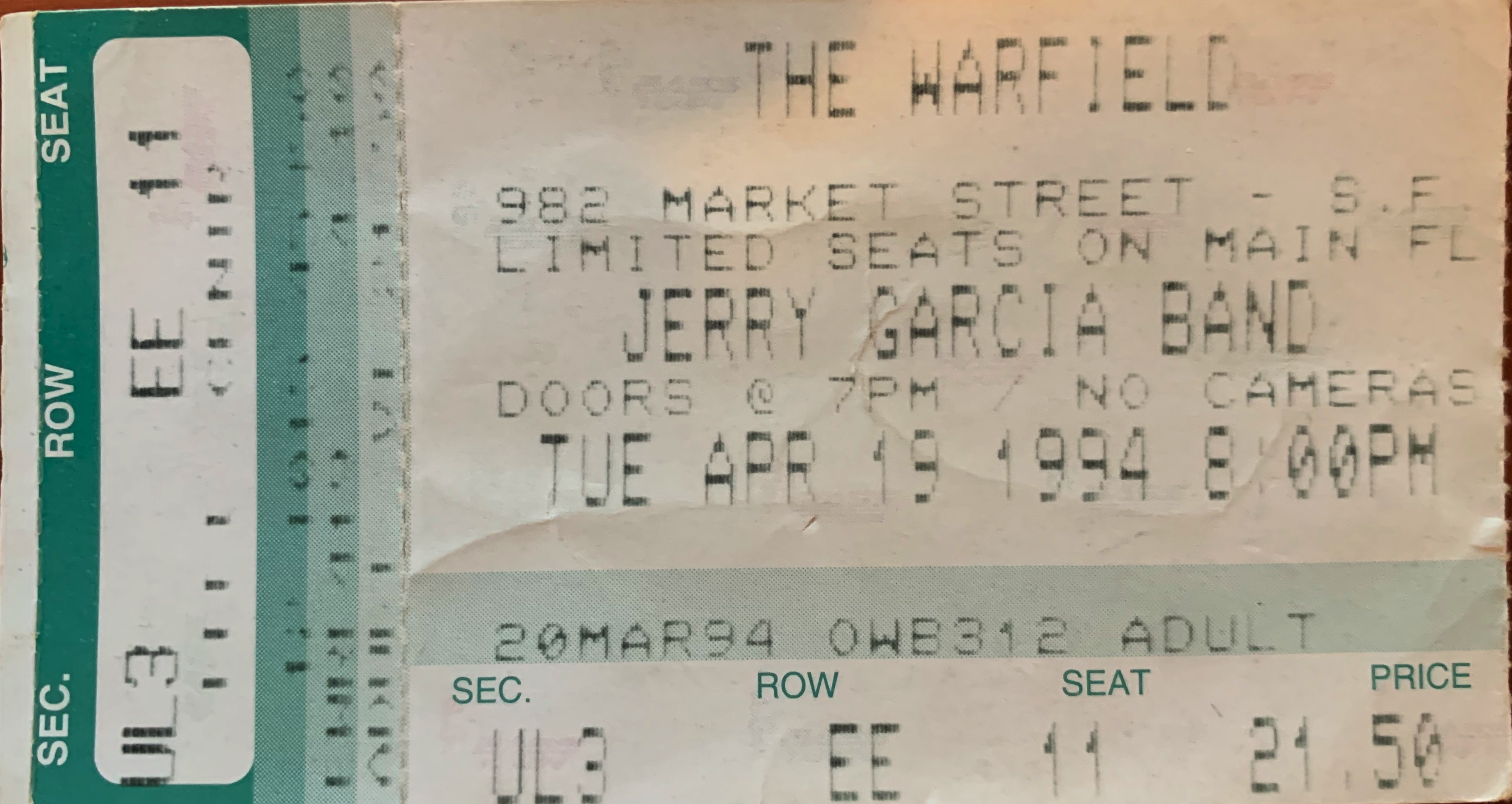 JERRY GARCIA BAND 4-19-1994 THE WARFIELD THEATER SAN FRANCISCO CA