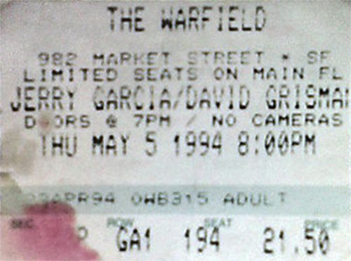 JERRY GARCIA AND DAVID GRISMAN 5-5-1994 THE WARFIELD THEATER SAN FRANCISCO CA