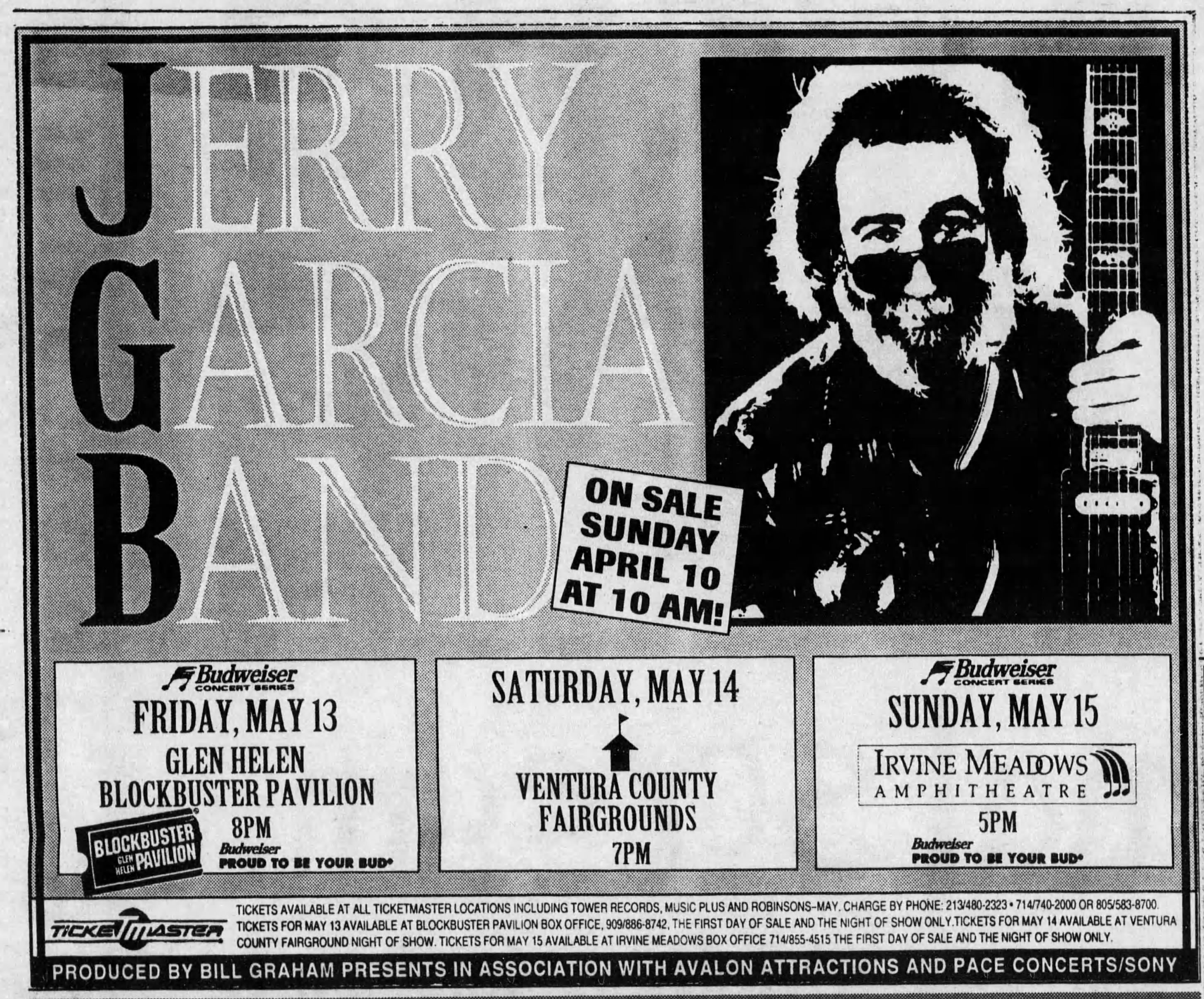 JERRY GARCIA BAND 5-14-1994 VENTURA COUNTY FAIRGROUNDS VENTURA CA