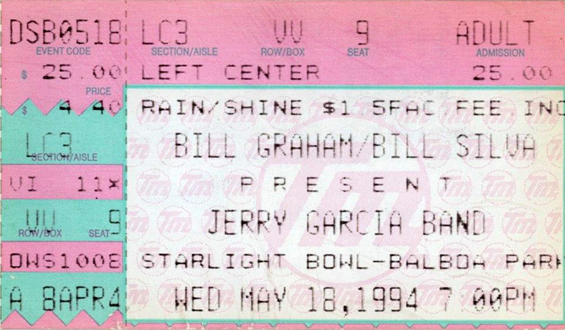 JERRY GARCIA BAND 5-18-1994 STARLIGHT BOWL SAN DIEGO CA
