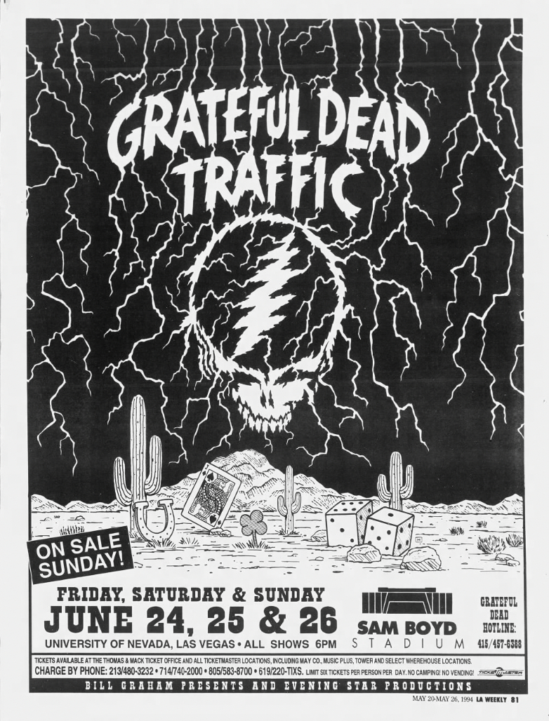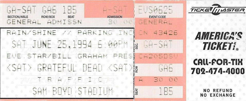 Grateful Dead 6 25 94 Set 2 Las Vegas NV. Sam Boyd Silver Bowl 6/25/94