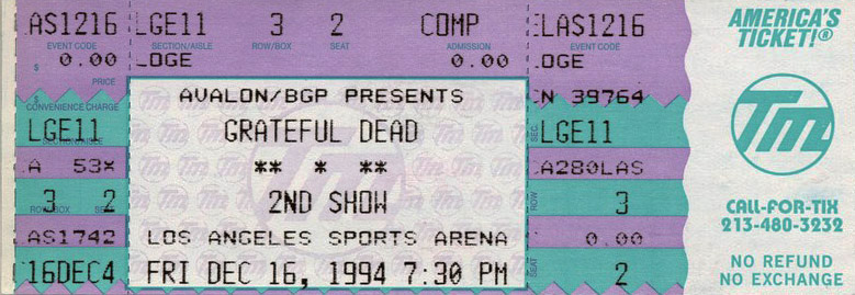 Grateful Dead 12-16-94 LA Sports Arena Los Angeles CA