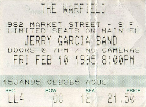 cxl: "Jerry Garcia's Injured Hand Cancels Gig," San Francisco Examiner, February 13, 1995, p. A-2