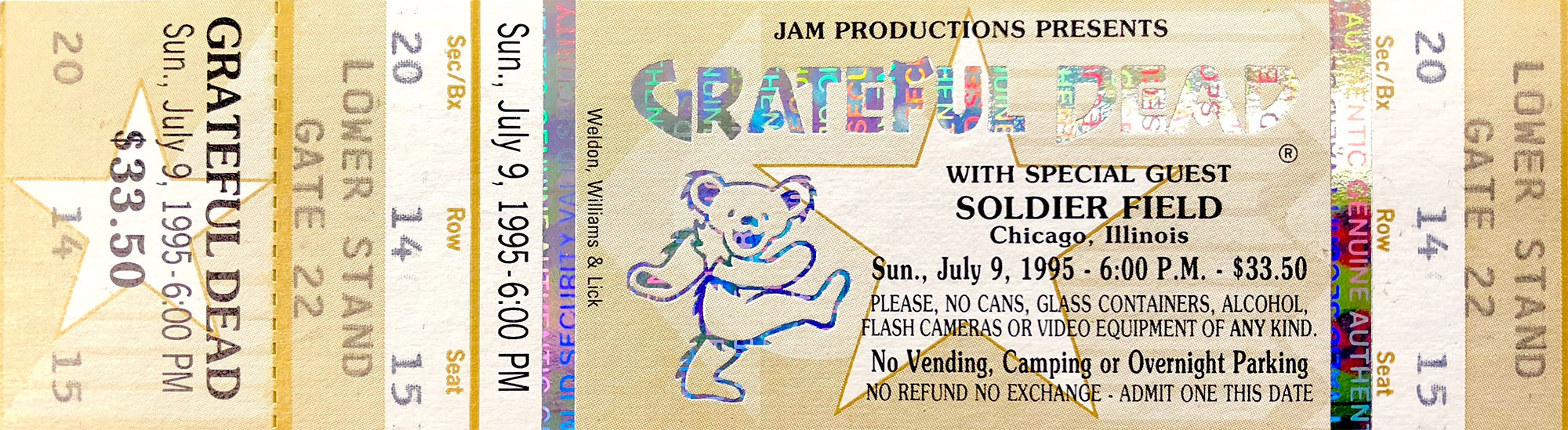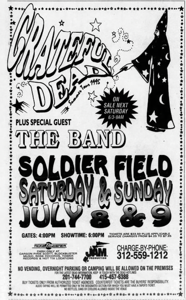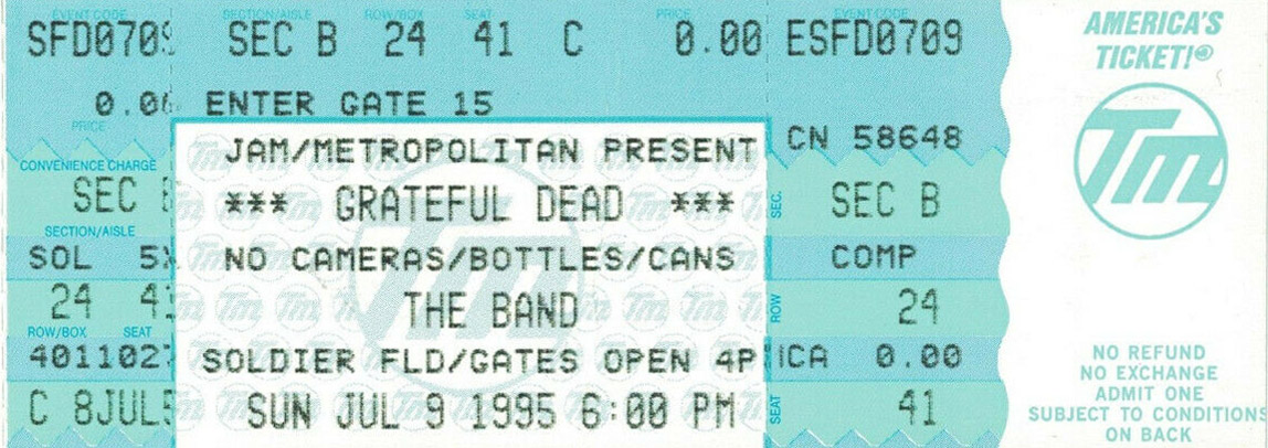 [1] Final performance [2] Bob on acoustic [3] Last performance (by GD) 1994-12-08 (54 events ago) and final time played by any act [4] Released on So Many Roads (1965 - 1995) [5] Released on Searching For The Sound Bonus CD [6] Fireworks display set to Jimi Hendrix's "Star Spangled Banner" after